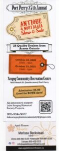 Hello everyone. I hope that the photos are clear enough to be read properly. My wife and I visited a small town called Orono yesterday. We really enjoyed ourselves. We spent well over an hour visiting the second-hand store in Orono and the flower shop called Apple Blossom Flowers. I met the owner, Merissa, who was very friendly to me. If you were to visit her store, please mention the fact that Oshawa Rocks mentioned her establishment and her card is up here on Oshawa Rocks. Thanks! Apparently Port Perry is having an antiques & nostalgia show & sale event October 18 and October 19. It really looks like fun. Also remember that I broadcast live every Saturday starting at noon eastern time. Please tell all of your internet friends about this. Thanks. Len.